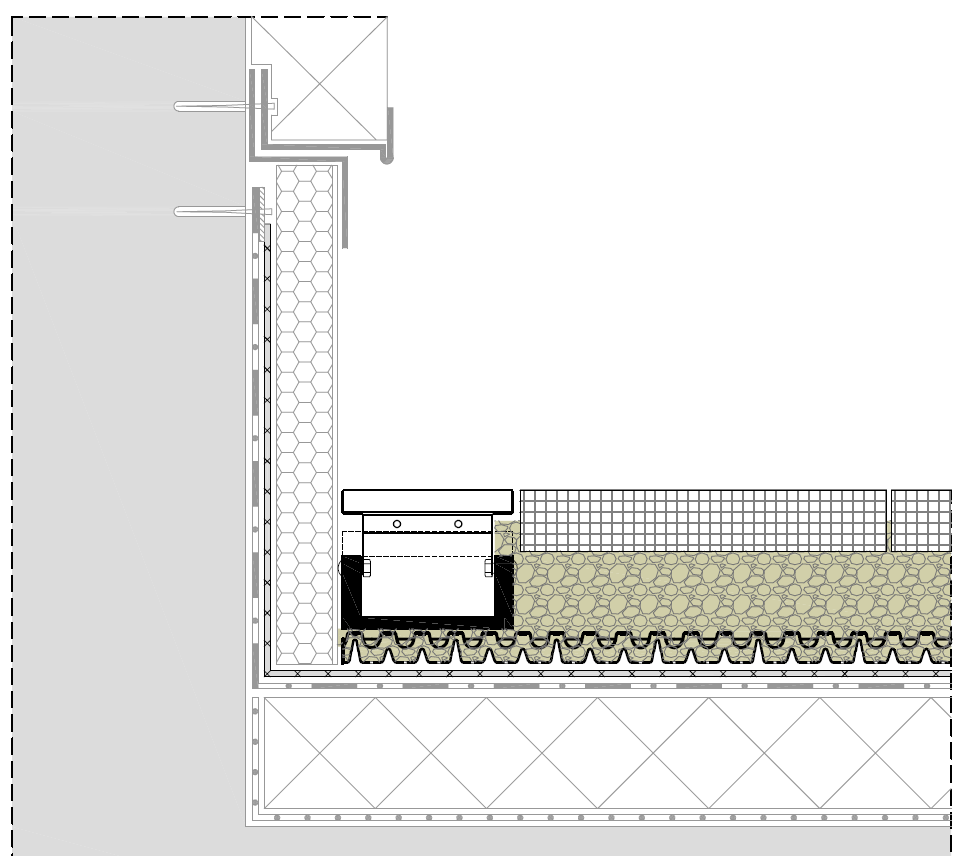 Ein besonderes Merkmal der KSA Kontrollschächten sind die für verschiedene Kehlausbildungen vorgefrästen Bruchlinien an der unteren Ecke, wodurch der Einbau unmittelbar neben der Attika, und so die fachgerechte Ausführung von Ablauföffnungen in der Nähe der Attika ermöglicht wird.