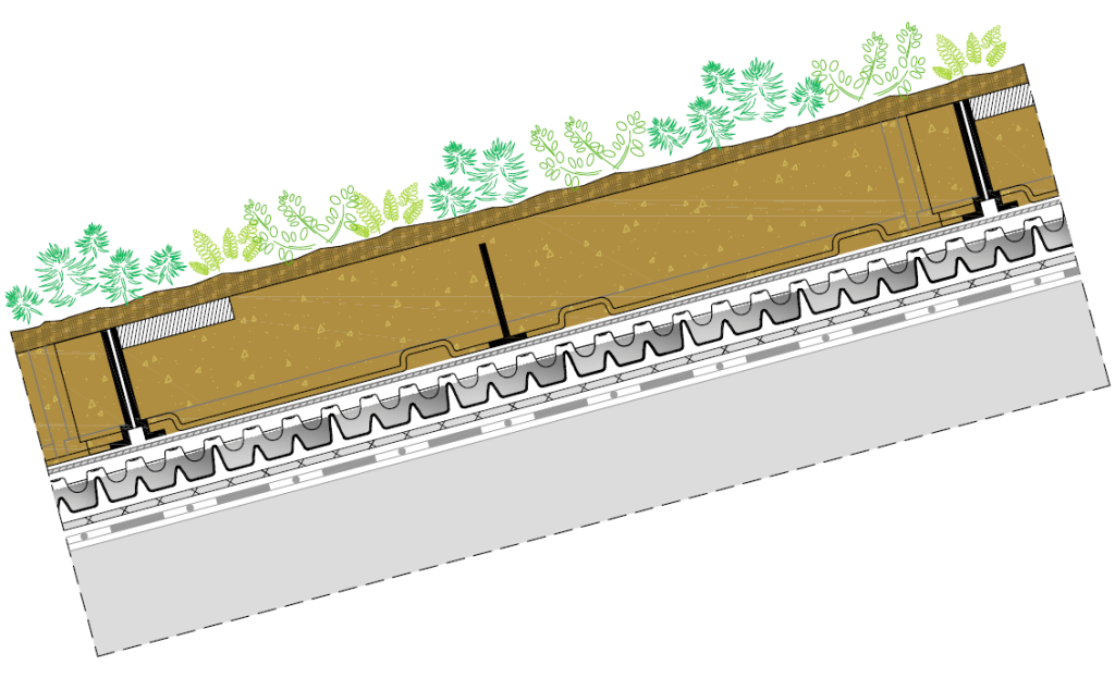 Esővízmegtartó- és lefolyáslassító lemez extenzív és félintenzív zöldtetőkhöz, továbbá gyalogosforgalommal terhelt, burkolt felületekhez. Emelt ütésállóságú újrahasznosított polisztirolból (HIPS). A speciálisan kialakított gátstruktúra biztosítja a lefolyást késleltető hatást.